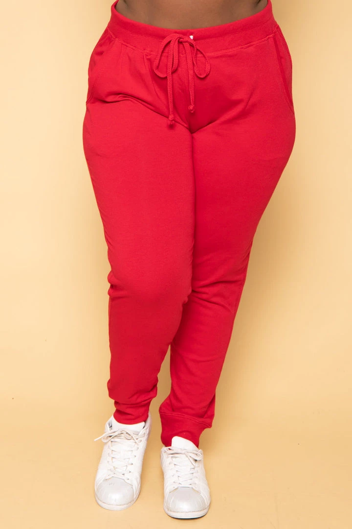 This plus size, pair of sweat joggers feature an elasticized waist and drawstrings for adjustment, side pockets construction, and banded bottom hem