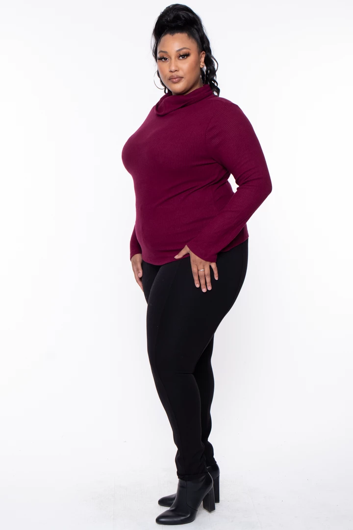 This plus size, stretch knit blouse features: a cowl collar neckline, long sleeves and ribbed texture with a straight hem this top can me match with some cute jeans