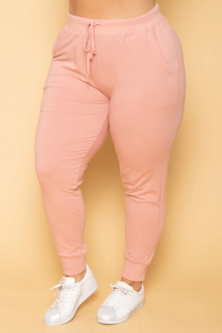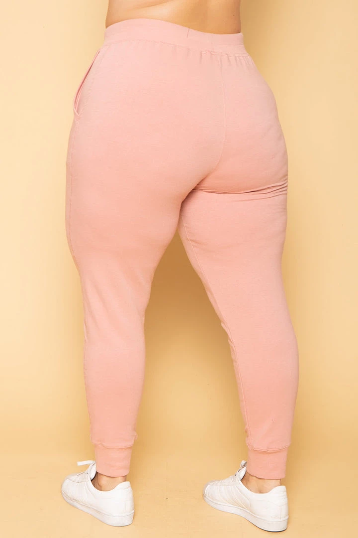 This plus size, pair of sweat joggers feature an elasticized waist and drawstrings for adjustment, side pockets construction, and banded bottom hem
