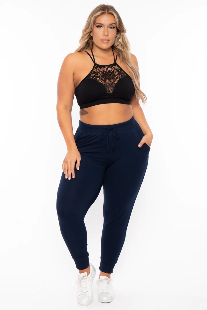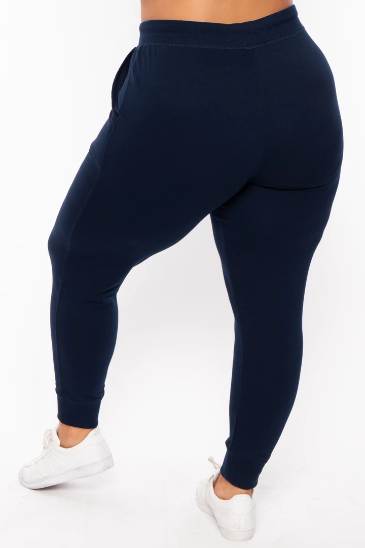 This plus size, pair of sweat joggers feature an elasticized waist and drawstrings for adjustment side pockets construction and banded bottom hem