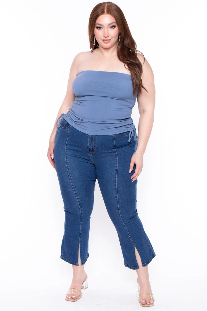 This plus size, tube top features lightweight ribbed material that slides over your curves and sexy adjustable side ruching with ties