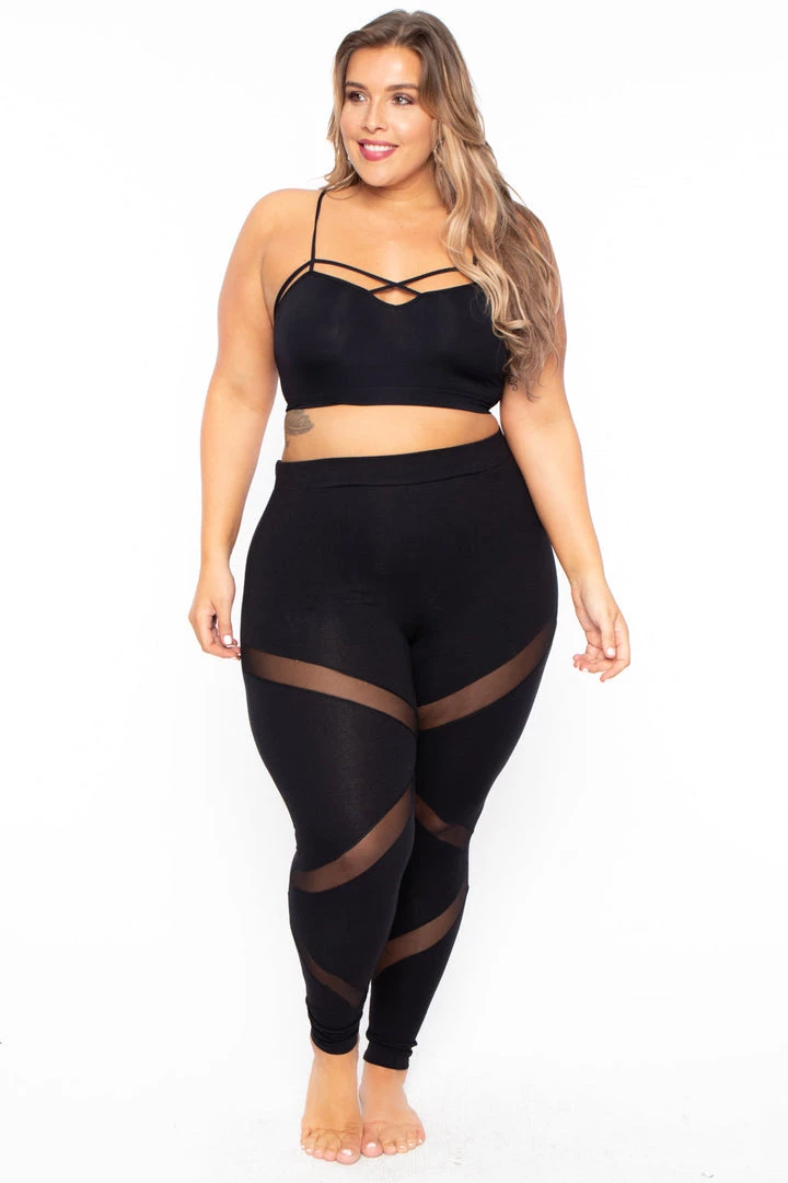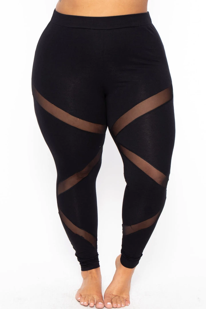 This plus size, stretch knit leggings features a sturdy cotton/spandex fabric, a contrasting abstract mesh paneling design for maximum cool down, and an elasticized waistband. Perfect for shaping up your gym repertoire with stylish yet multi-functioning leggings.