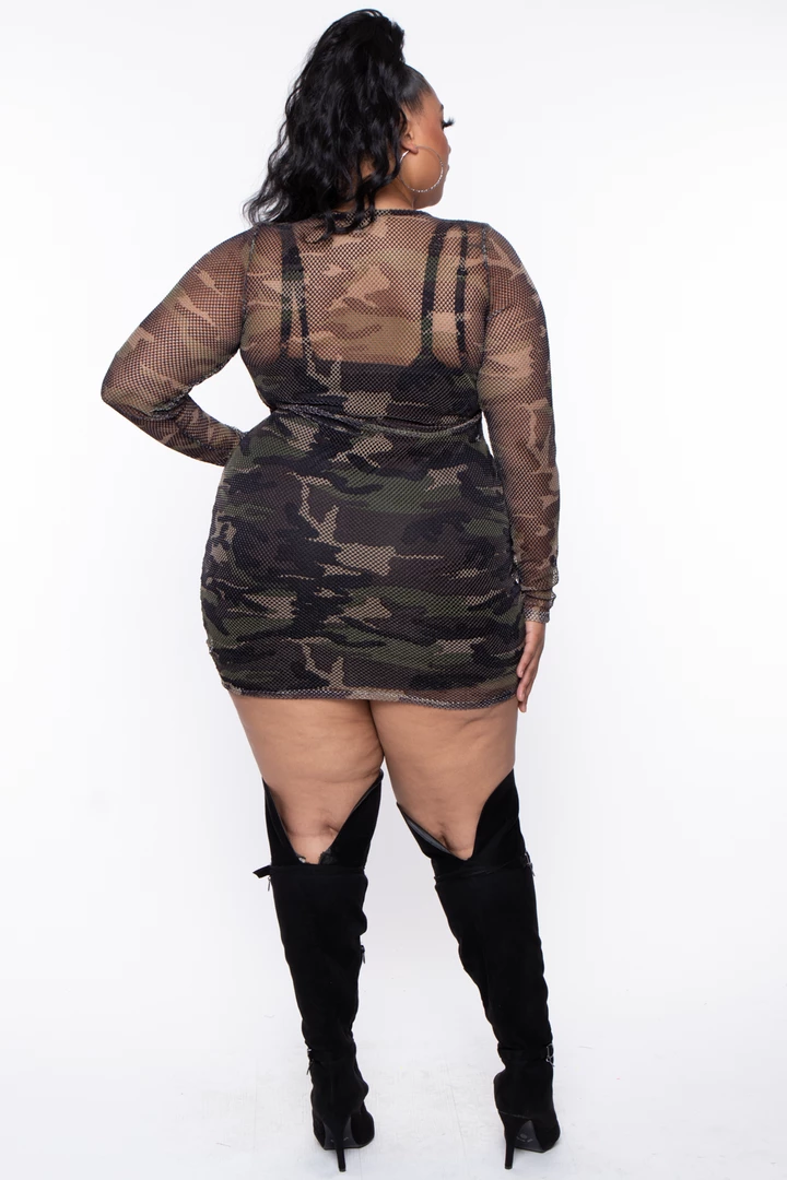 This plus size, novelty printed fishnet knit dress features a round neckline with long sleeves mini length and a bodycon silhouette.