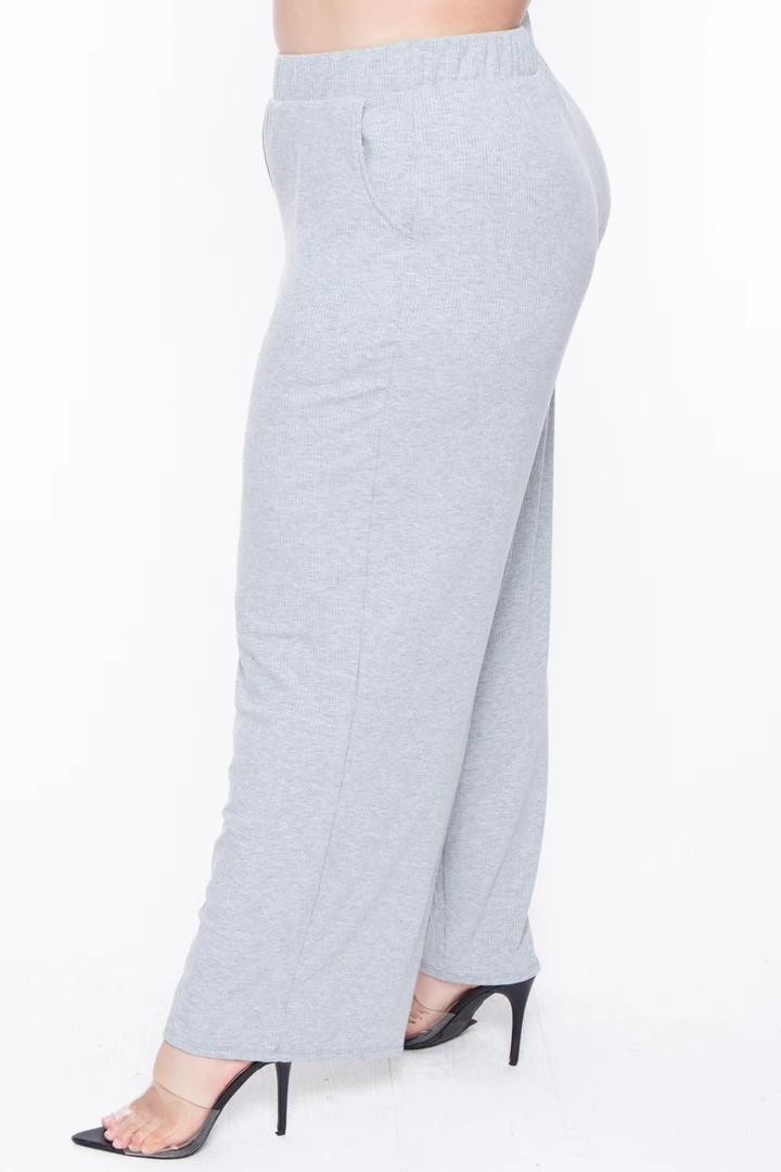 This plus size, pair of stretch-knit pants futures: an elastic waistband side pockets and flared leg very comfy, and cute pants to match with our new cami tops or body suits