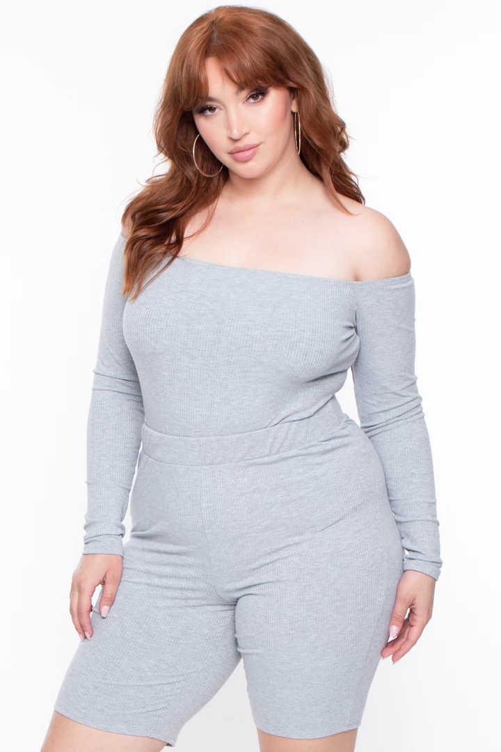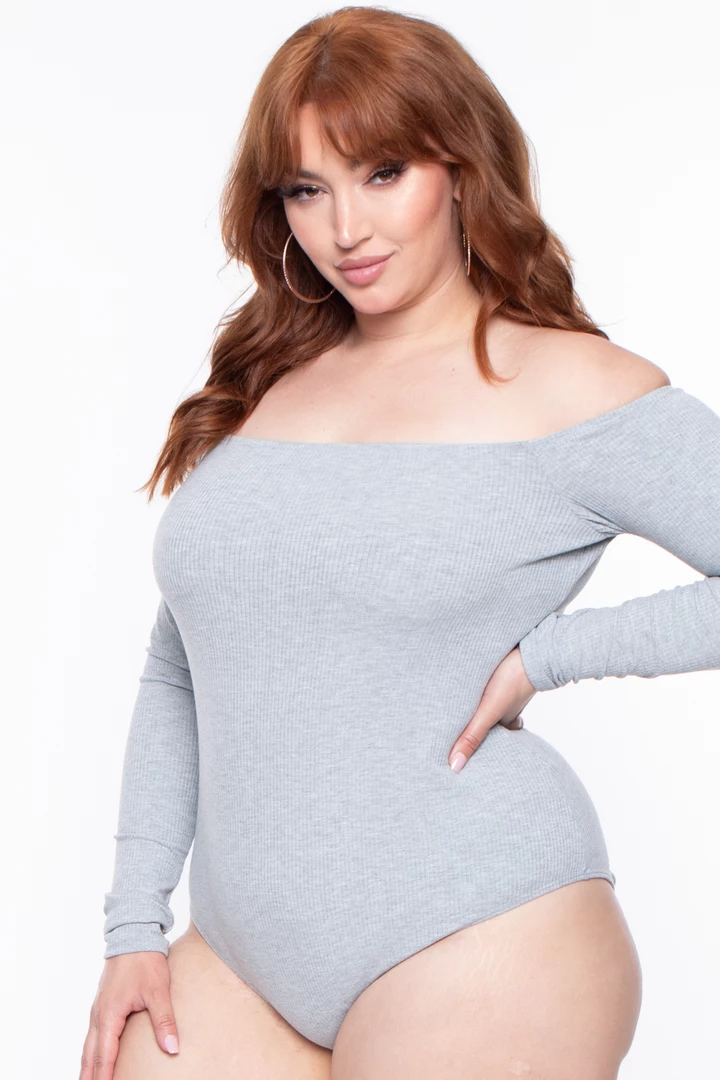 This plus size, stretch knit ribbed bodysuit futures: an off the shoulder neckline Long sleeves ribbed texture, and dual snap-button bottom closures very sexy and cute