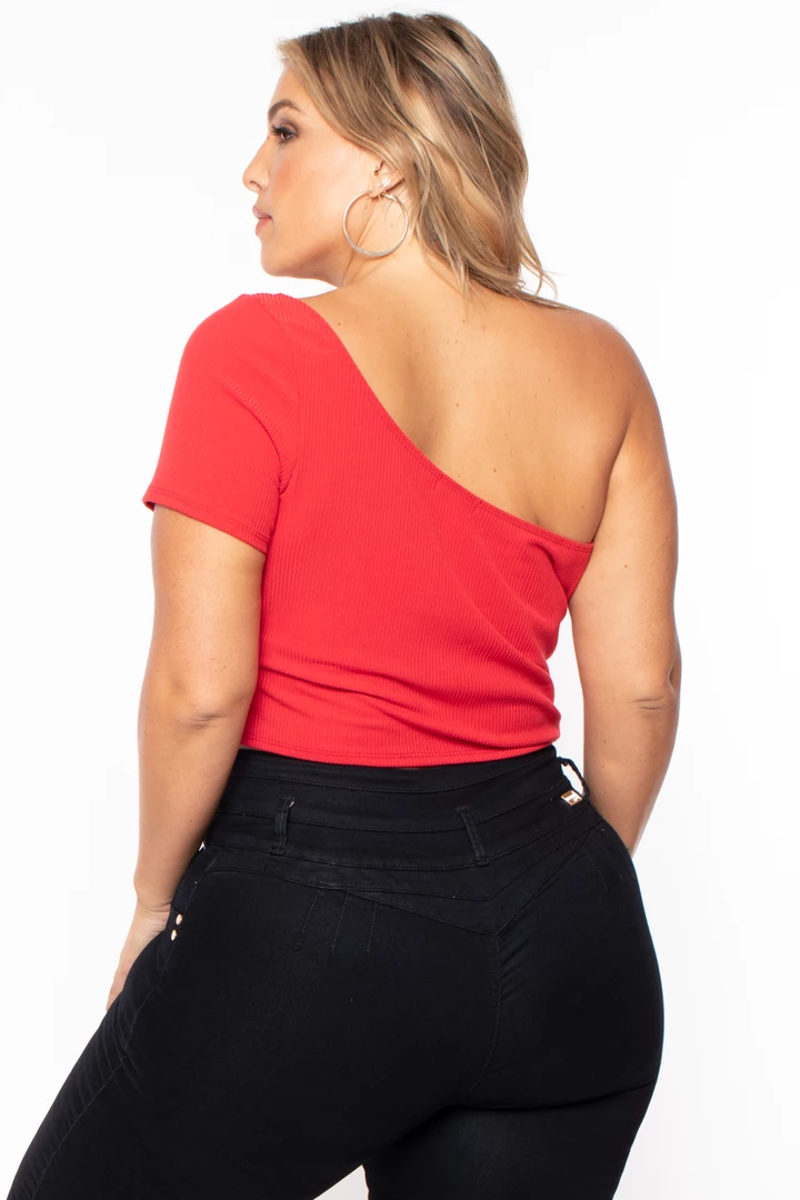 This plus size, stretch top features a crop top with an asymmetric neckline one short sleeve, and a side ruched hem detail that can be adjusted, this ribbed fabric is very comfyÂ