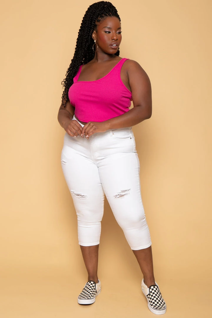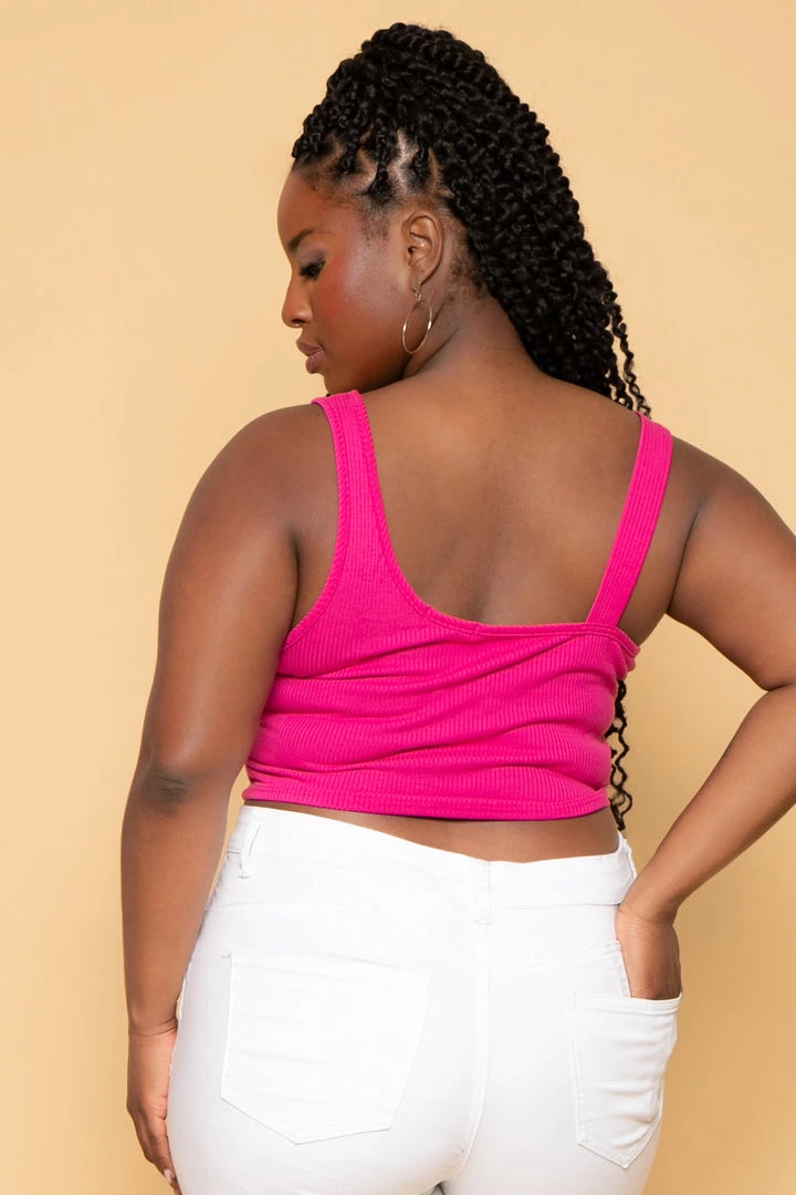 This plus size, stretch knit cami top features an asymmetric neckline with tank straps and a cropped hem very comfy and cute cami top
