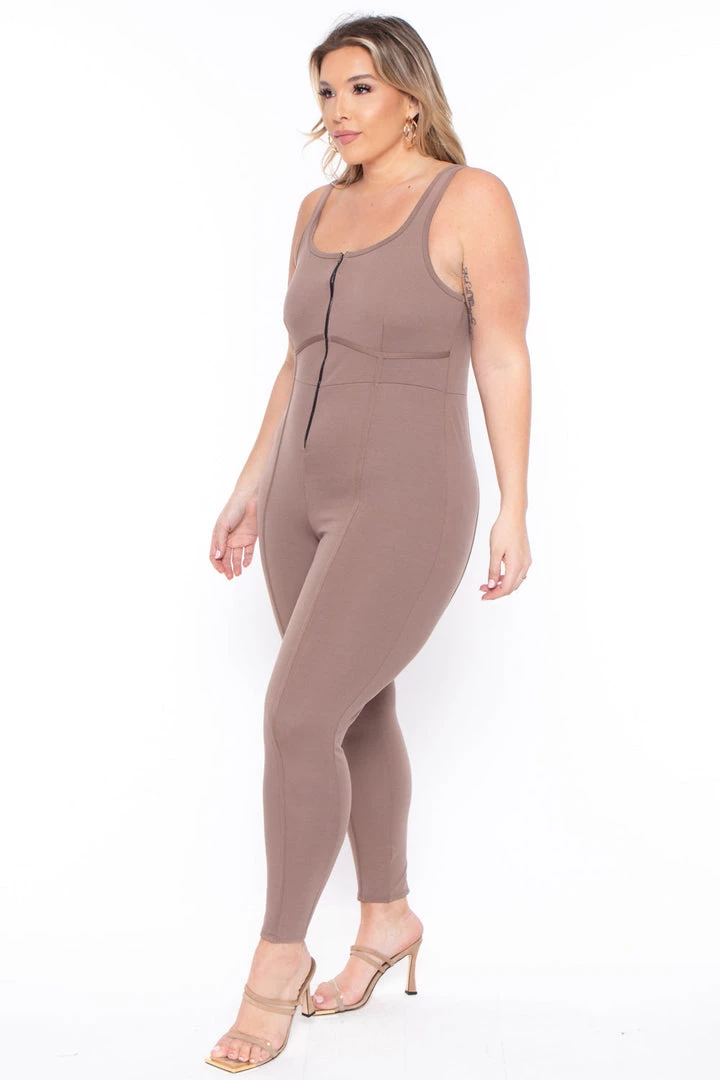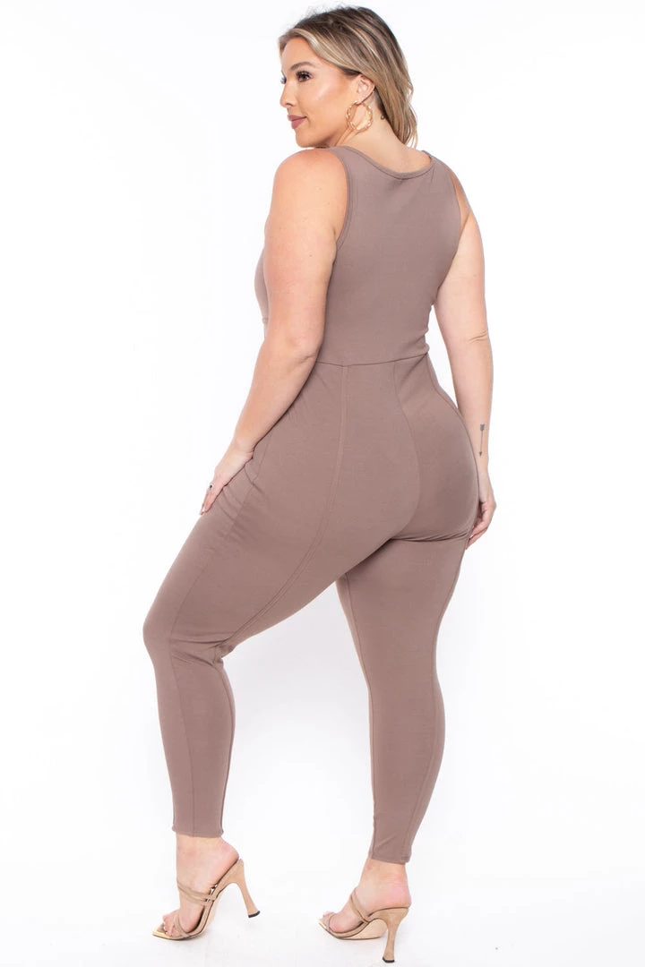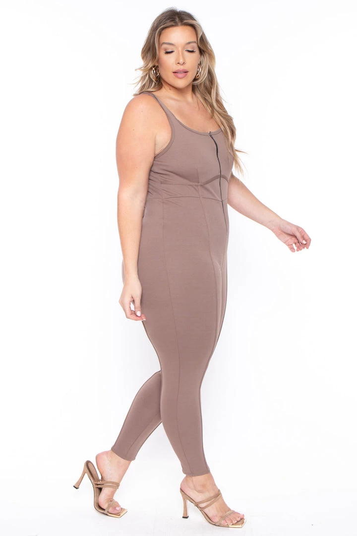 This plus size, jumpsuit is perfect for a snatched look that you can party all night in! Bond Girl features an exposed front zipper, scoop neckline, sleeveless and curve hugging silhouette