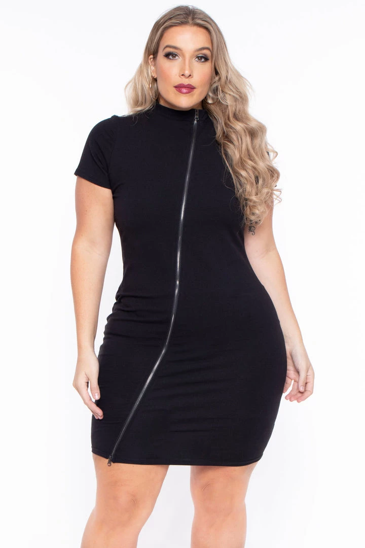 This plus size, LBD has a sexy twist to a classic! Keira features an adjustable zipper detail and curvy hugging silhouette