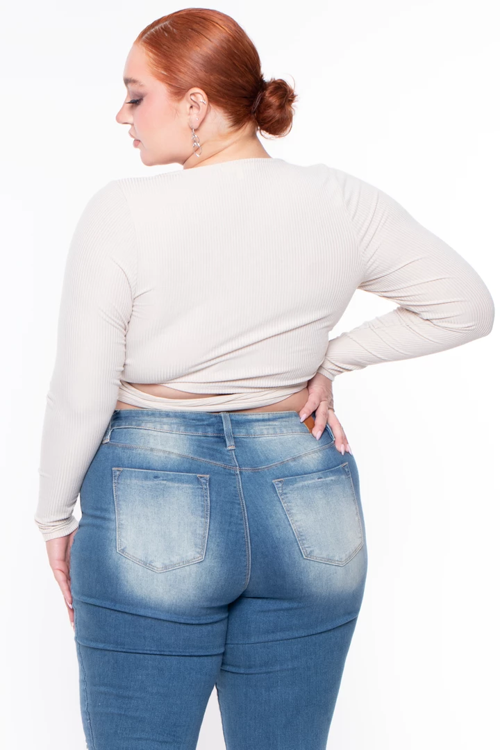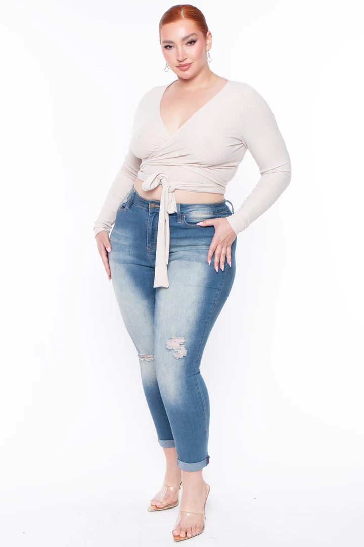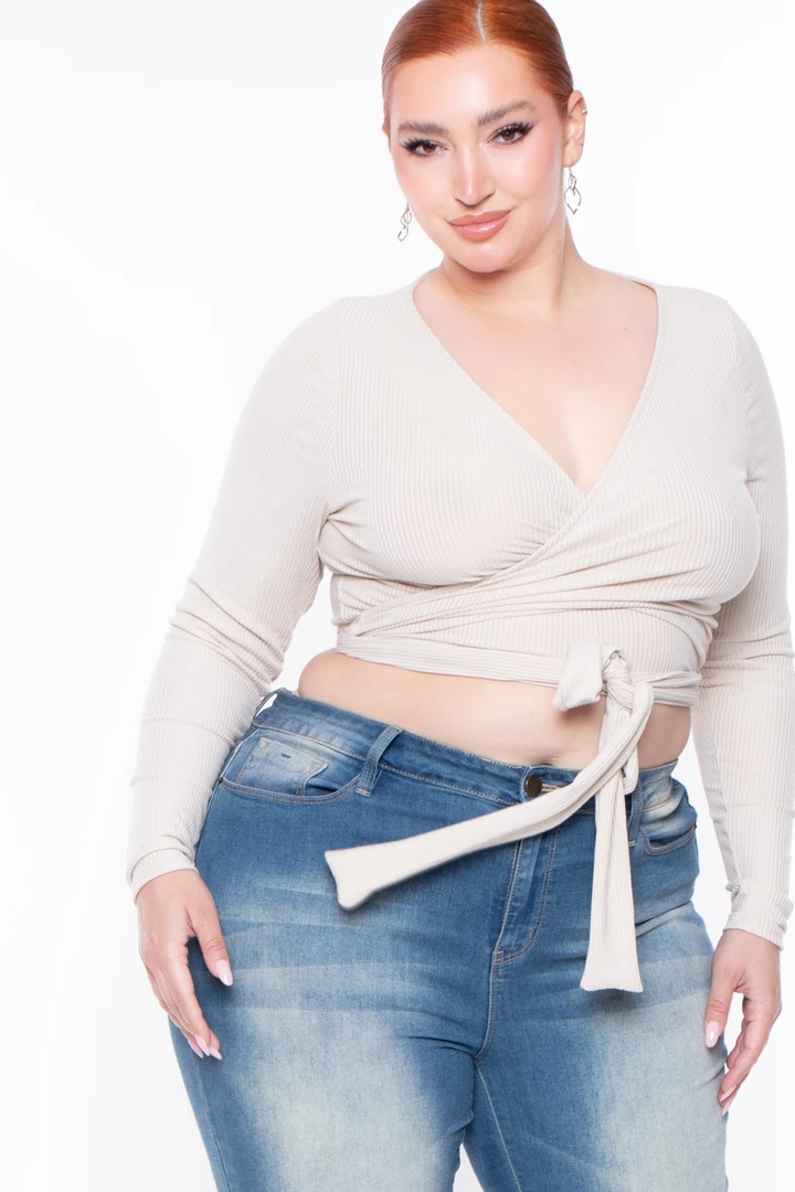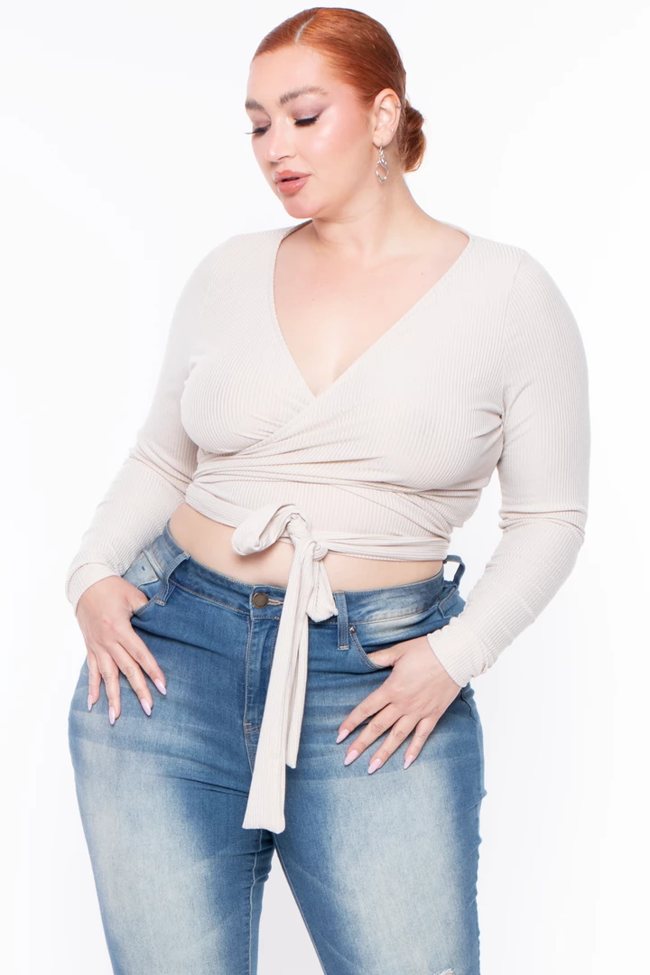 This plus size, wrap top is comfort and style in one. Marren features a sexy yet classic look of a wrap top, deep v neckline and long sleeves