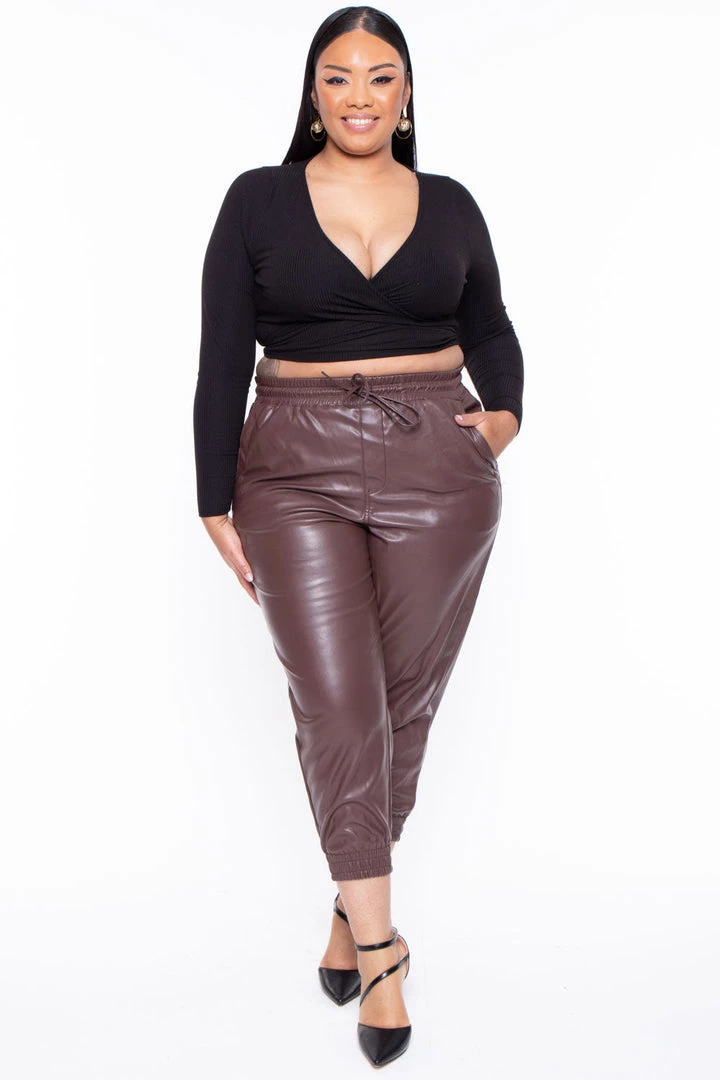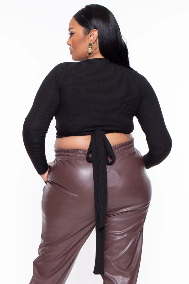 This plus size, wrap top is comfort and style in one. Marren features a sexy yet classic look of a wrap top, deep v neckline and long sleeves
