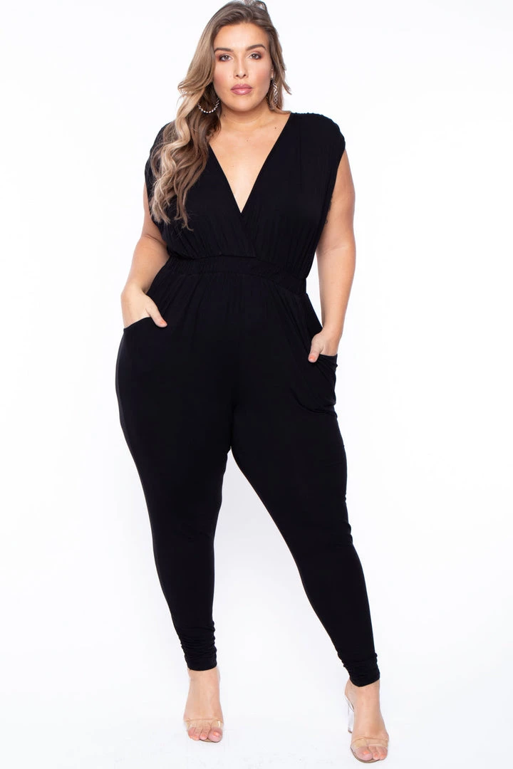 Curvy Sense Plus Size Rosewood Cross Front Jumpsuit – Black Back In Stock