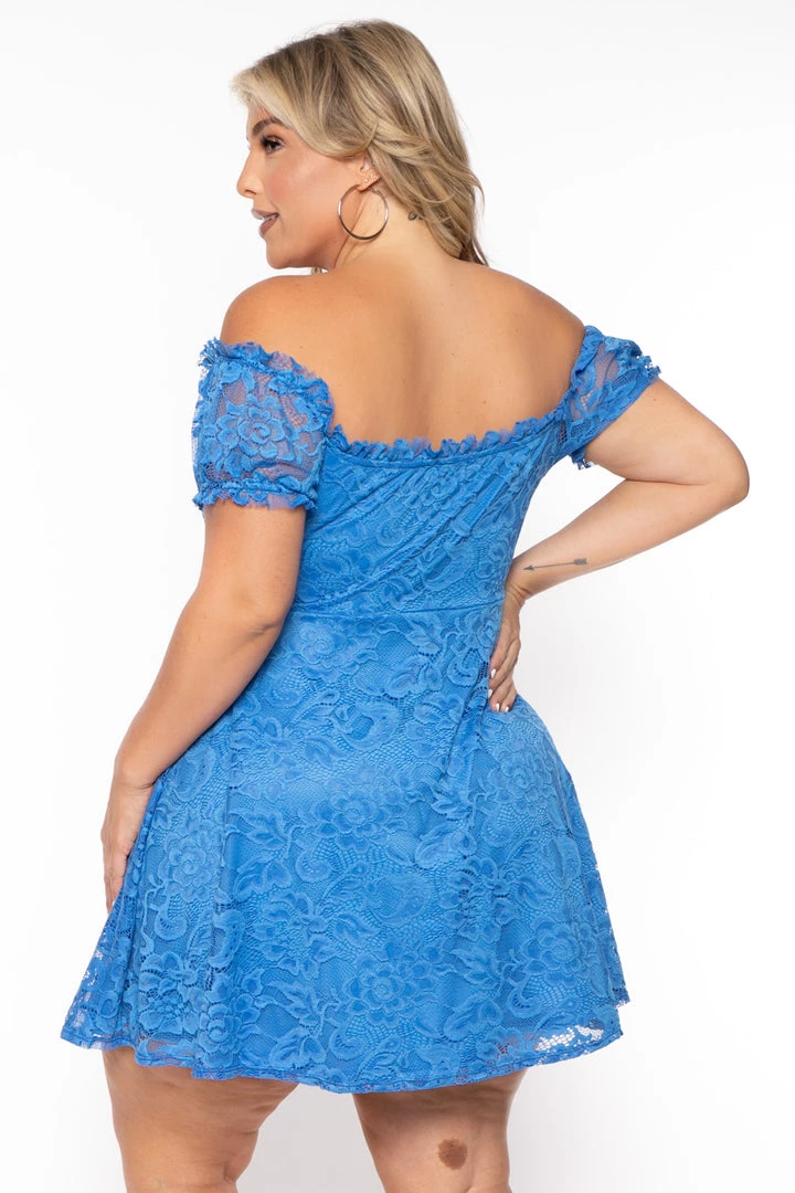 This plus size, lace off the shoulder dress features a subtle sweetheart neckline, in a flowing silhouette, with a full lining.