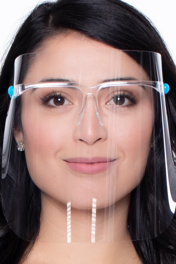 Wrap-around face shield covers from the top of the eyebrow to chin. It protects your eyes and face from saliva, droplets, sprays, splatters, wind, pollen, and aerosols.