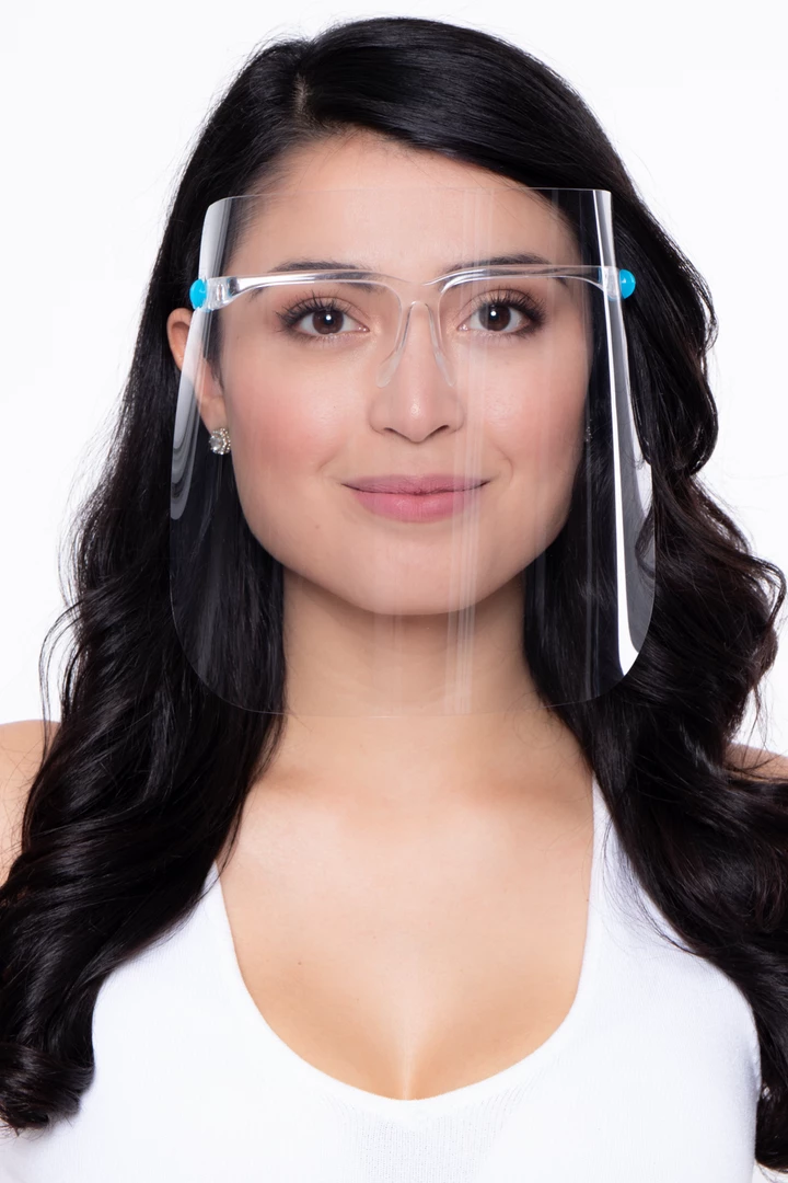 Wrap-around face shield covers from the top of the eyebrow to chin. It protects your eyes and face from saliva, droplets, sprays, splatters, wind, pollen, and aerosols.
