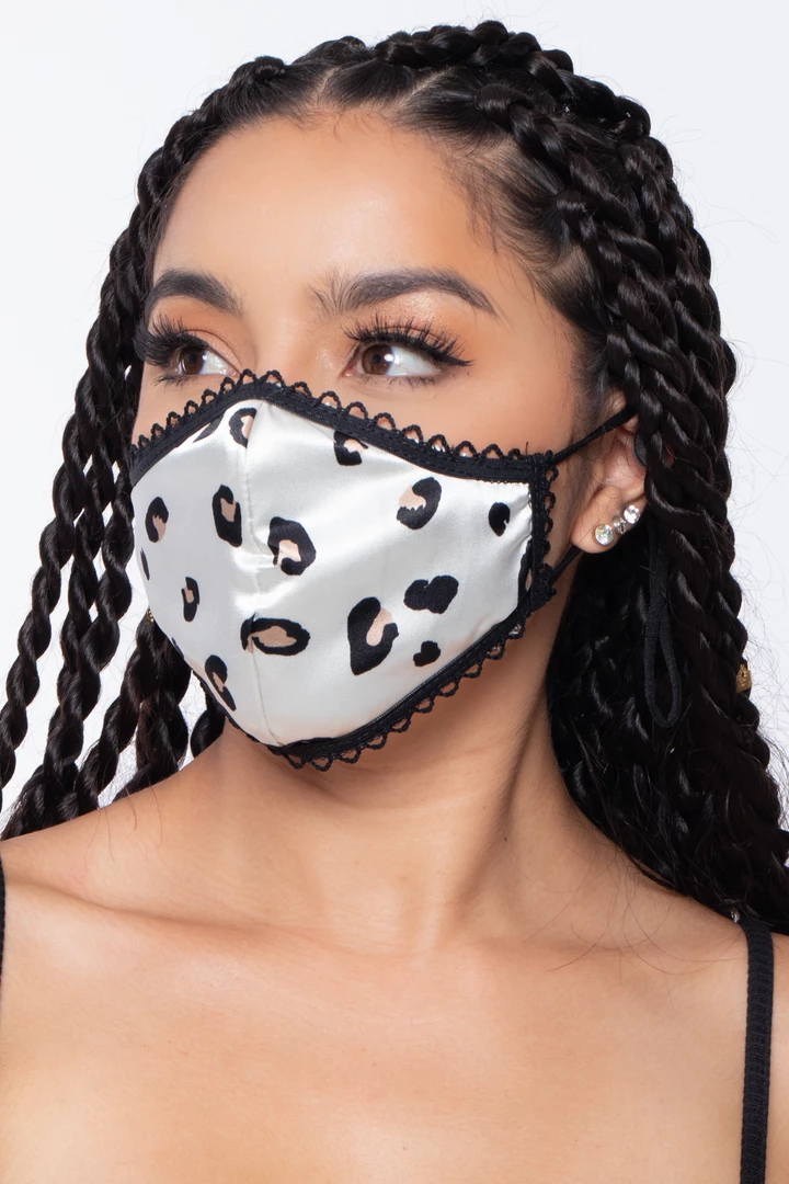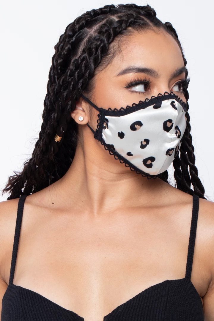 This washable and reusable unisex mask is made of a printed satin outer layer and soft cotton-spandex jersey material that makes it comfortable and breathable. The stretch bands make them stretch so that they fit faces of all sizes. Embroidery on the left side of the mask.