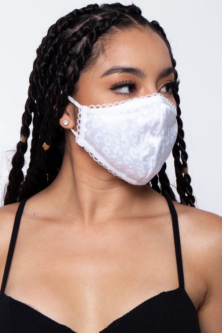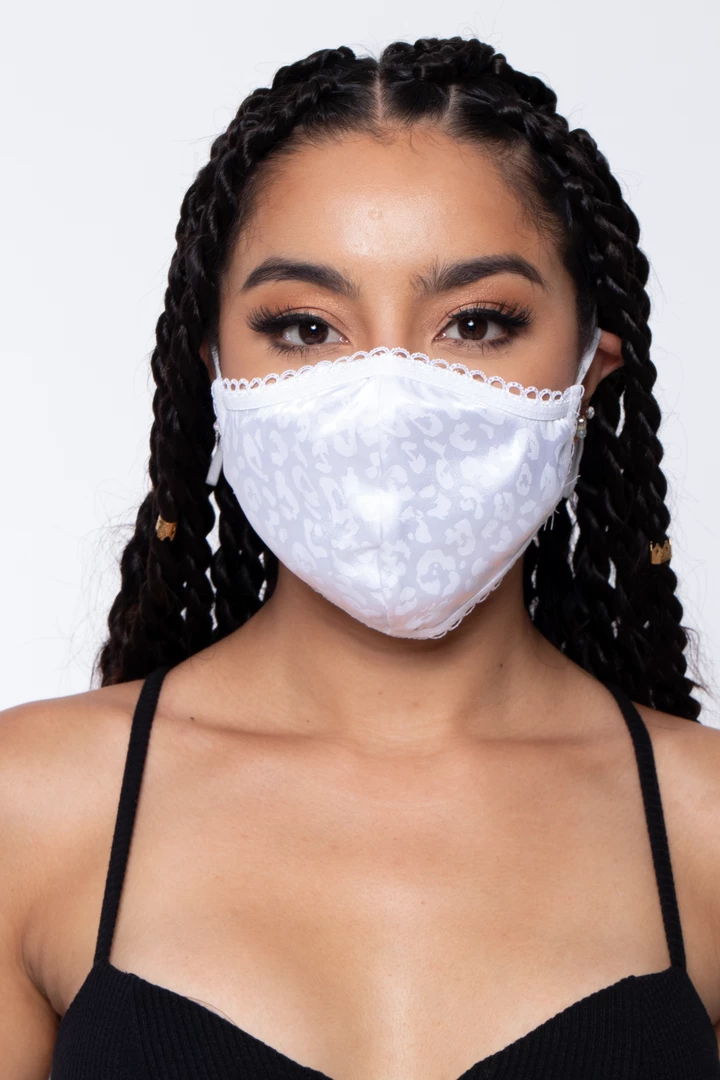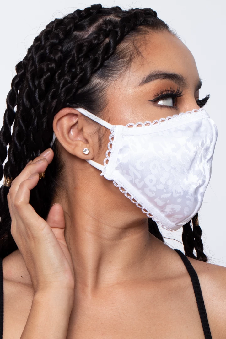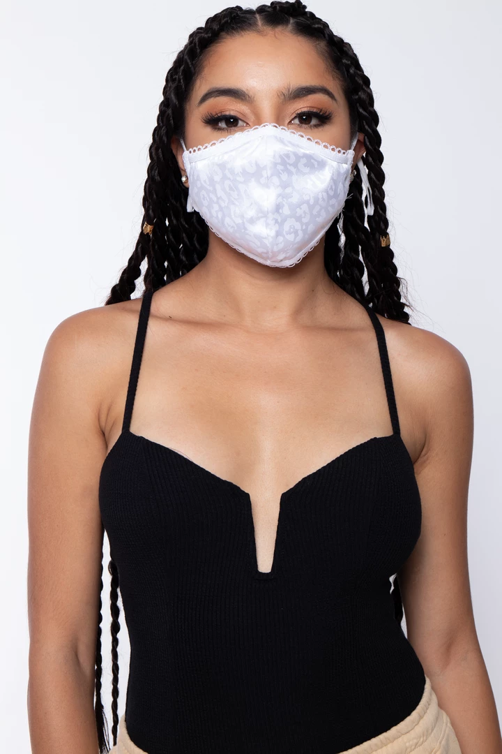 This washable and reusable unisex mask is made of a printed satin outer layer and soft cotton-spandex jersey material that makes it comfortable and breathable. The stretch bands make them stretch so that they fit faces of all sizes. Embroidery on the left side of the mask.