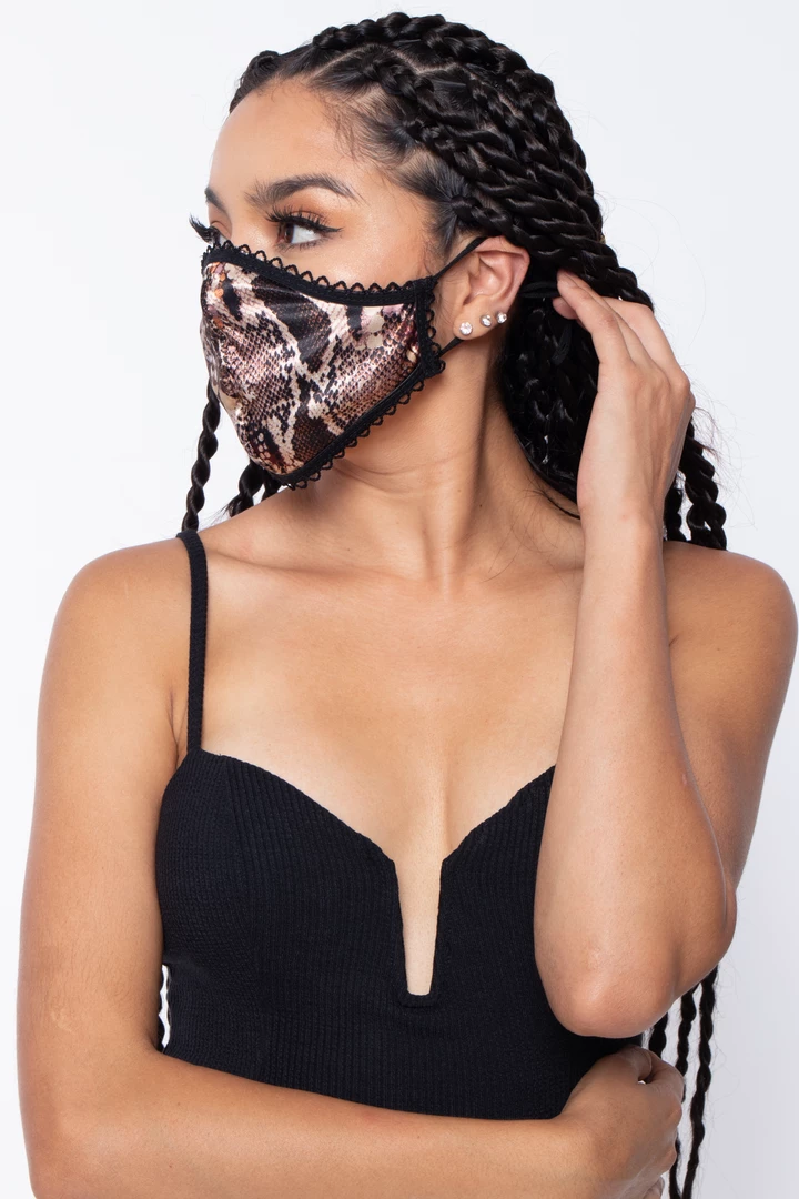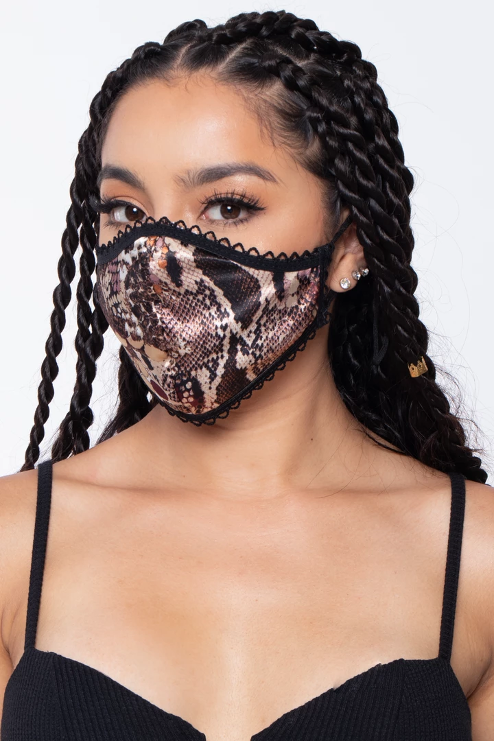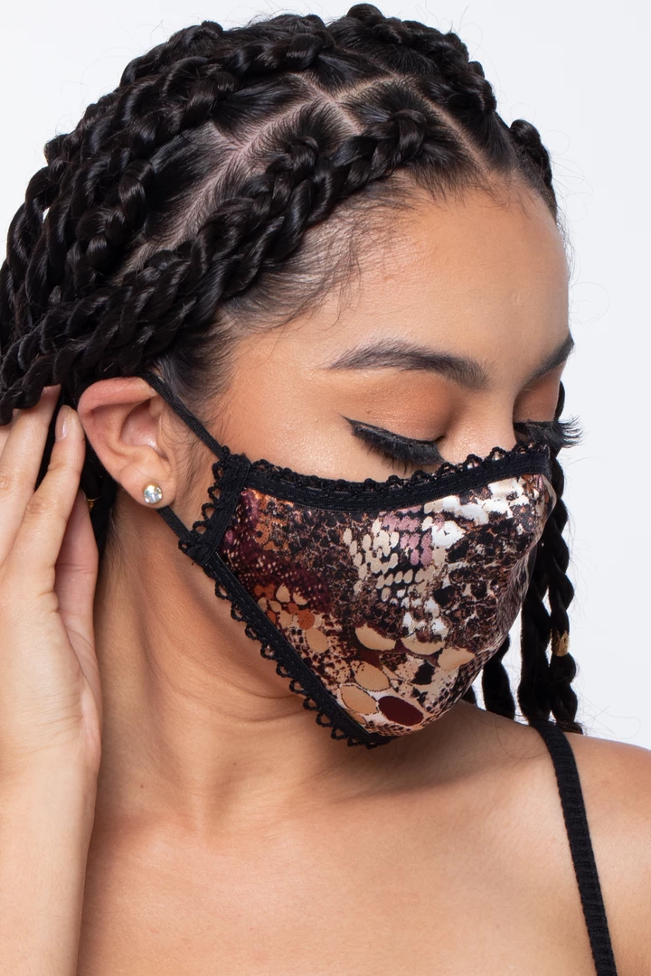 This washable and reusable unisex mask is made of a printed satin outer layer and soft cotton-spandex jersey material that makes it comfortable and breathable. The stretch bands make them stretch so that they fit faces of all sizes. Embroidery on the left side of the mask.