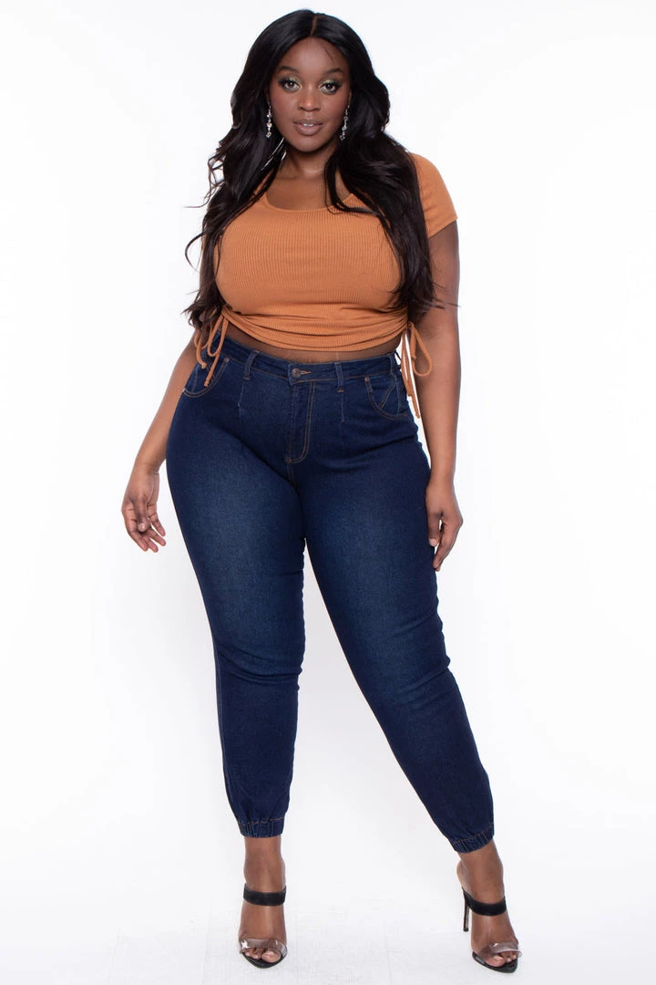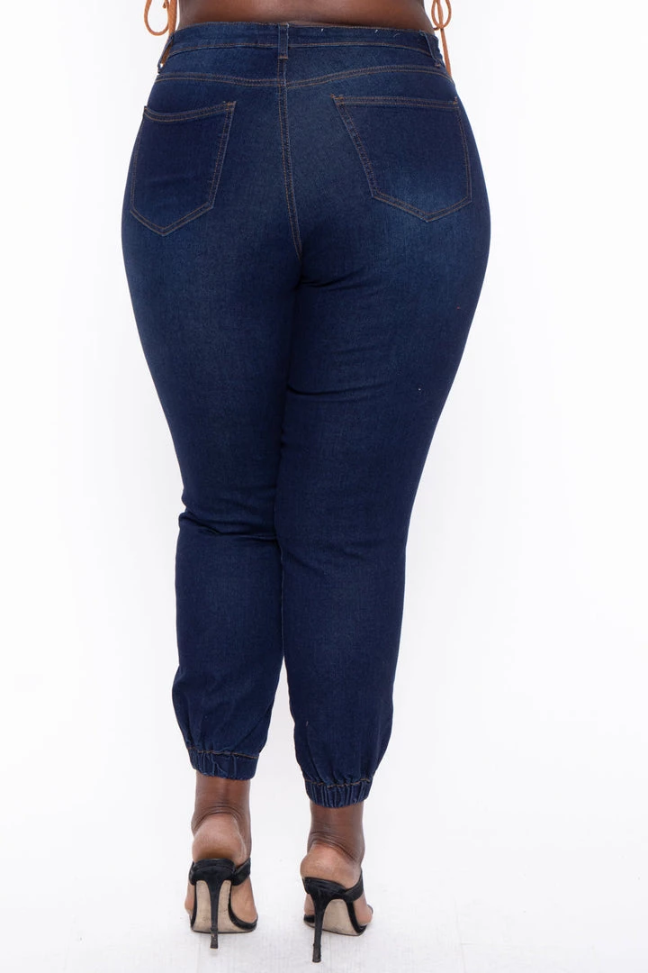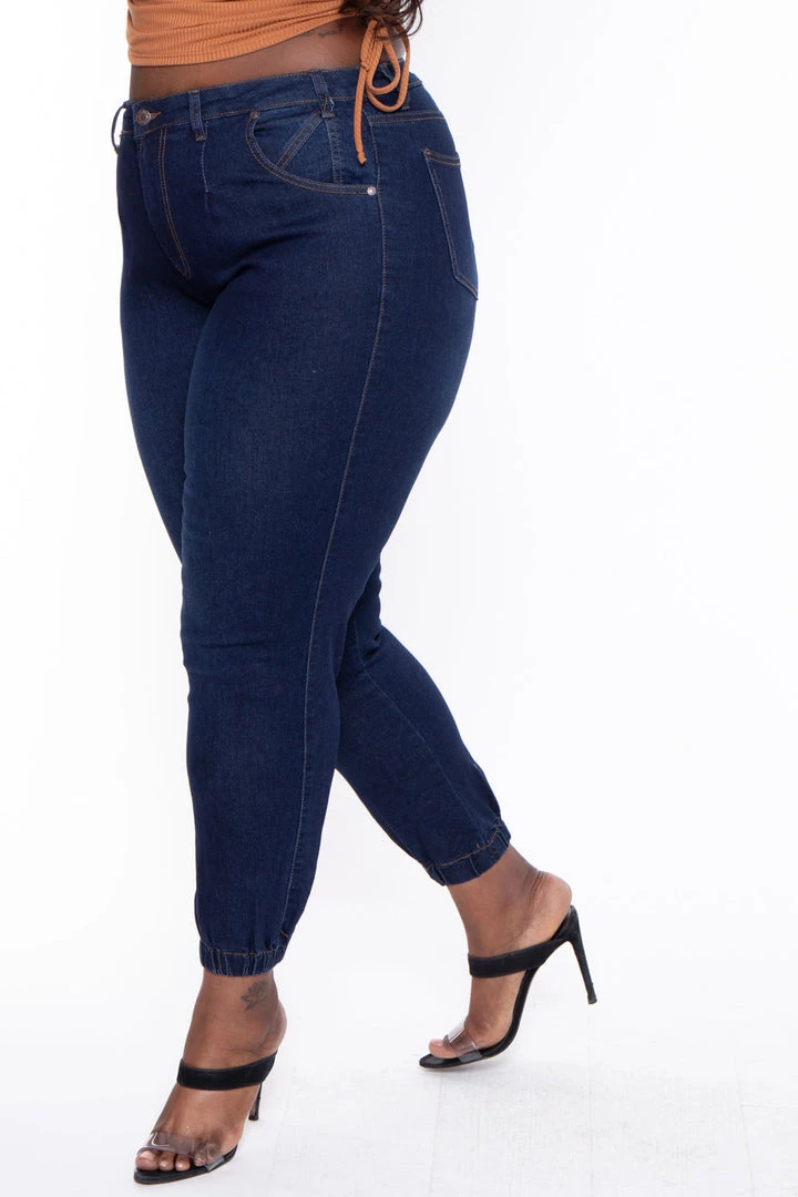 This plus size, jogger jeans features super stretch that slips over your curves. Perfect to dress up or dress down!