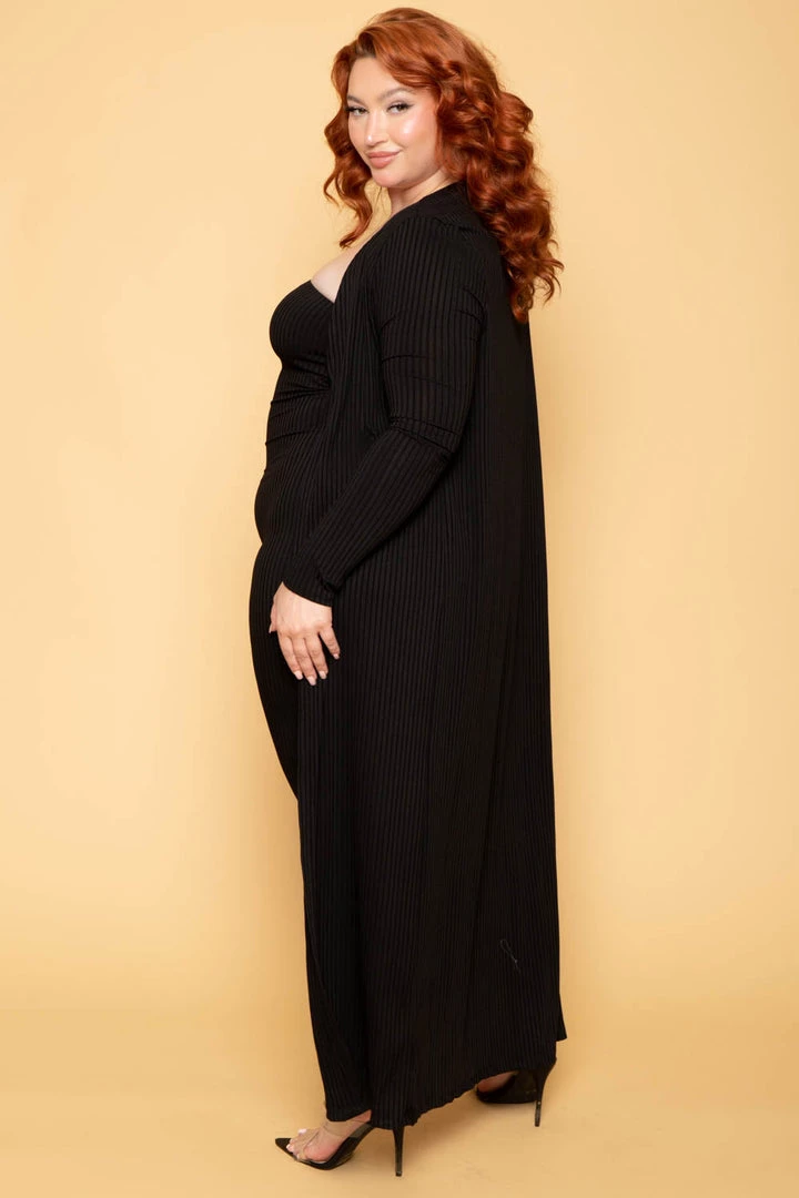This plus size, stretch basic rib knit midi tube dress features a straight neckline, long length and fully lined , a matching long cardigan with slim sleeves