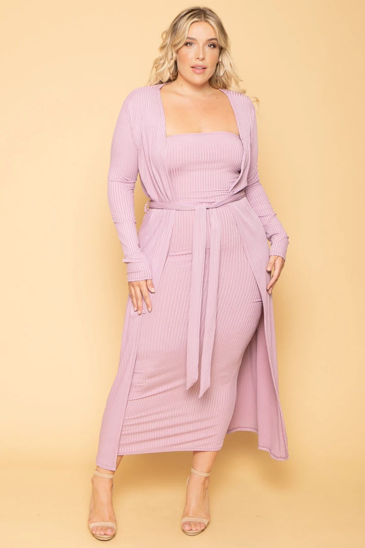 This plus size, stretch basic rib knit midi tube dress features a straight neckline, long length and fully lined , a matching long cardigan with slim sleeves