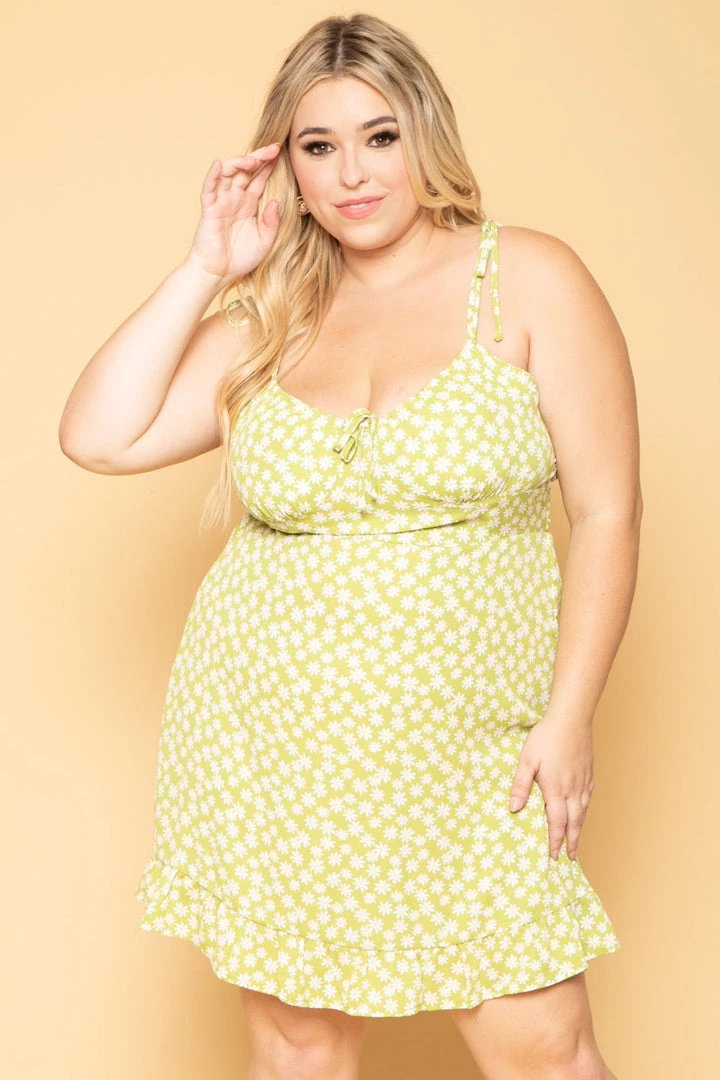 Hesperus Plus Size Daisy Floral Dress – Light Green New Arrivals