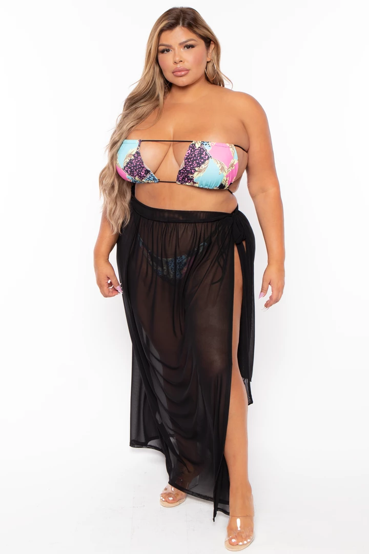 This plus-size, bikini 2 pc set swimsuit features cut out top with strings that can be tie to the back straight to as a halter the bottom has a dual string to make a cute tie and play around with the length and a cheeky cut bottom