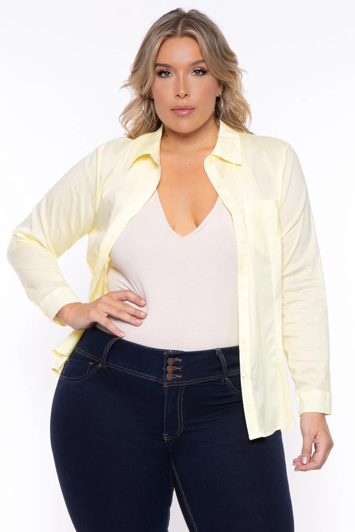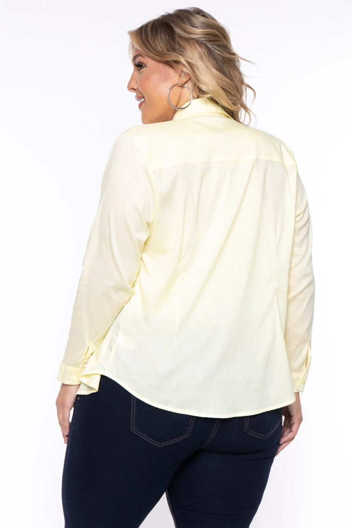 This plus size, tailored top is perfect for a sophisticated look. The Boss Babe features a classic tailored look, 8 button up closure, long sleeves, rounded hemline, and front pocket