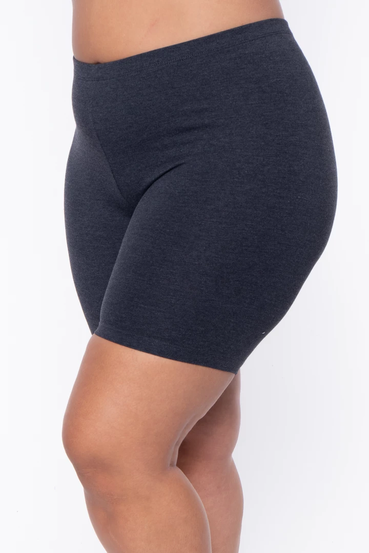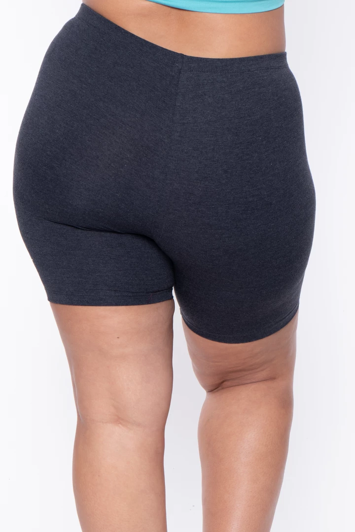 This plus size, stretch knit biker short features an elasticized high waistband, stretch cotton-blend, a pull on style, and a relaxed fit.