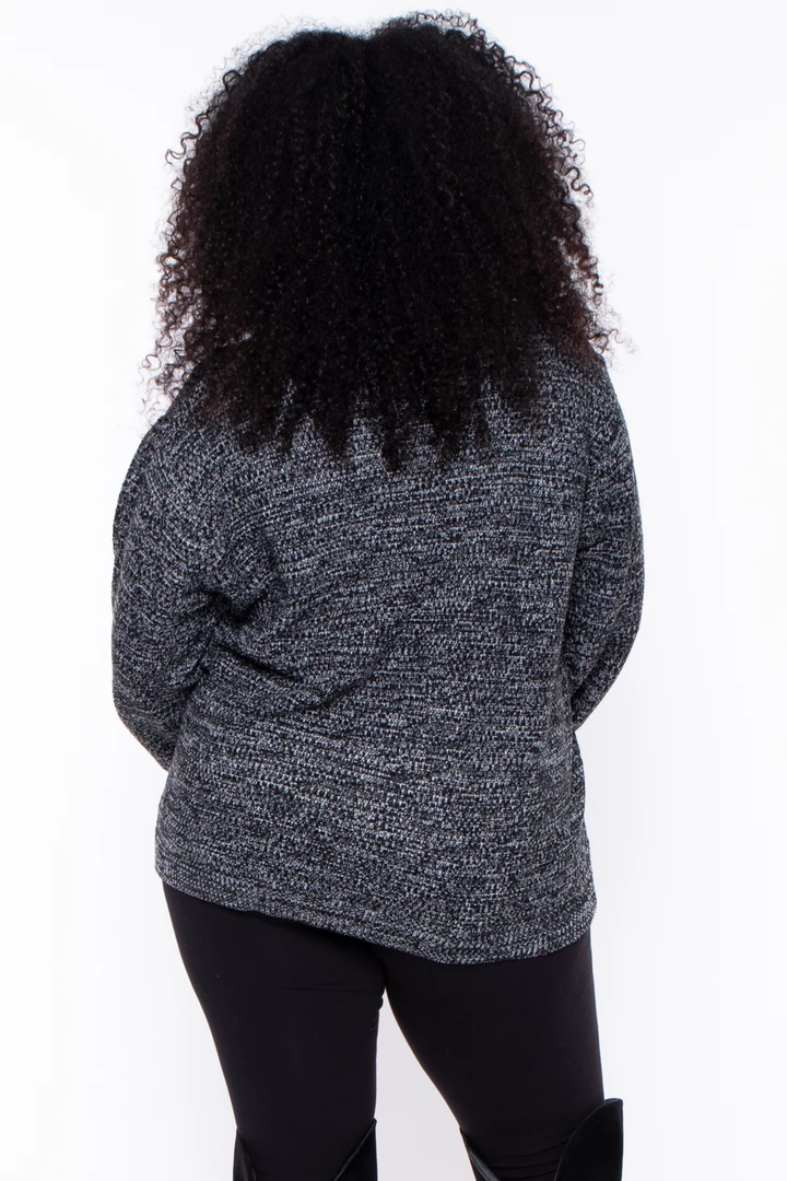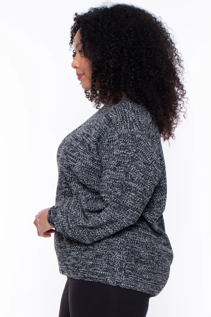 This plus size, stretch ribbed knit sweater featuring a crewneck, long sleeves, and a relaxed fit.