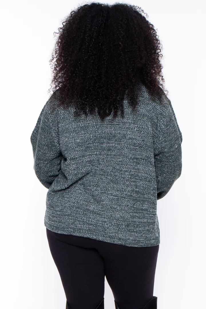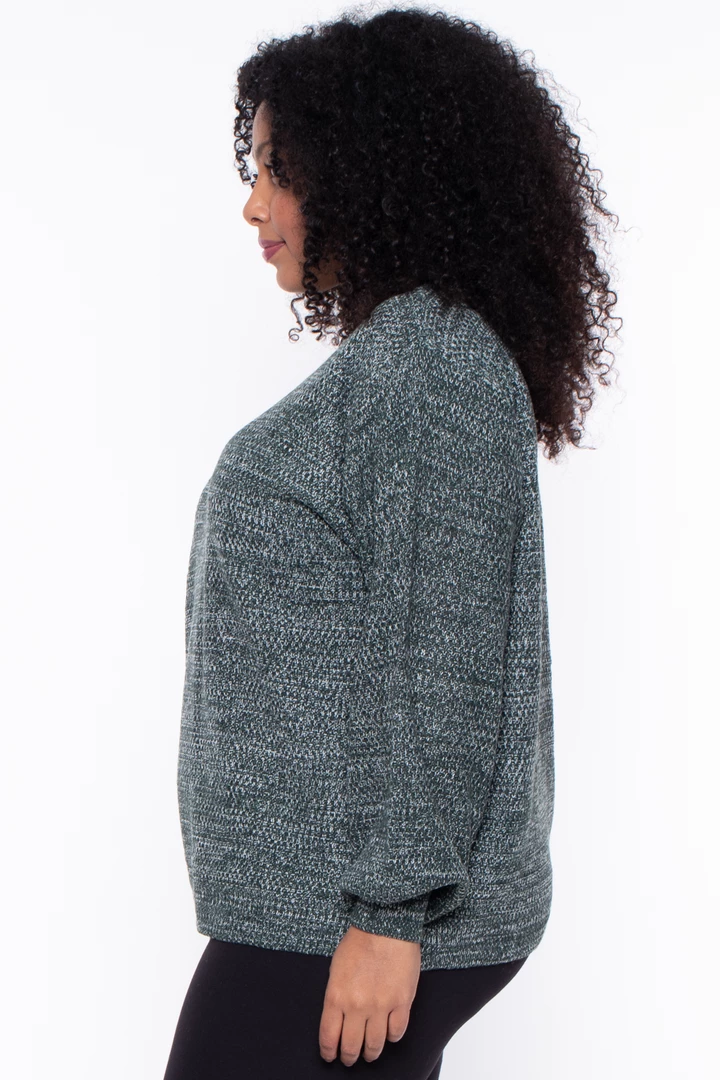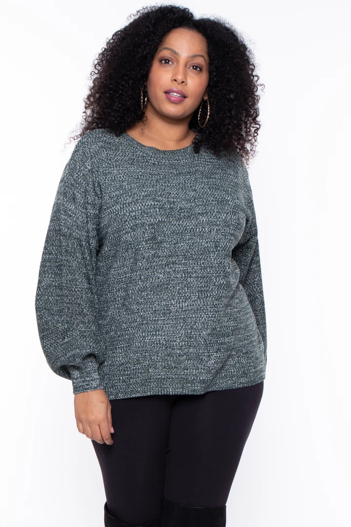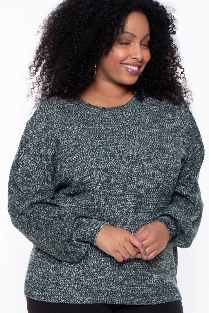 This plus size, stretch ribbed knit sweater featuring a crewneck, long sleeves, and a relaxed fit.